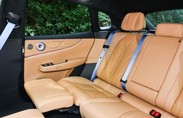 内饰方面变化要略大一些,当然标志性的扶手箱前端区域电子挡杆杯架等元素其实没有太大的调整,没有采用怀挡机构,可能也是成本考量,主要对于中控面板和门板装饰进行了调整,前者层次感更加的丰富,显得更为高级,后者则有着更具豪华感的多种材质面板进行堆叠,增强了档次感,而这种档次感也是本次内饰修改的核心,例如第2排座椅,新增了四向电动调节腿托,两向电动踏板,后排娱乐屏,配合125度一键躺倒功能,通风加热按摩等配置,号称是提供了极氪009光辉级别的更加行政化的高级体验,也希望能够兼顾更多方面的需求。